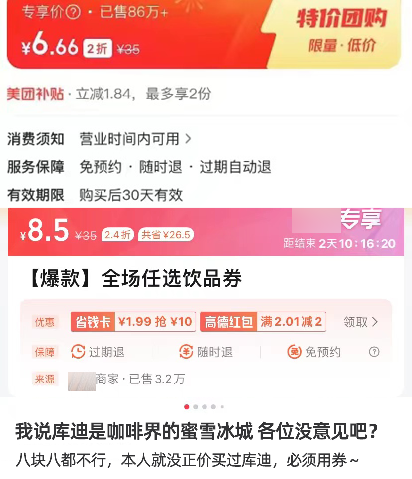 网传一种猜测是,库迪最初对标的本就不是中产小资们的慢品咖啡,也不是打工人的一剂强心提神快饮,而是蜜x冰城。