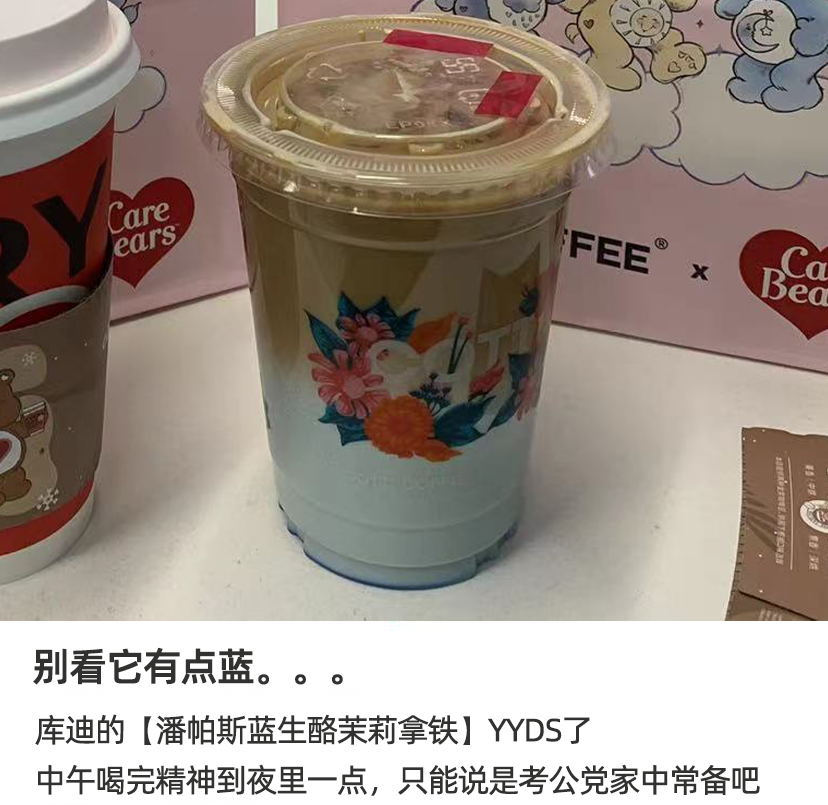 考公人则是测评出堪比千年人参提取液的最强提神饮品,潘帕斯蓝生酪茉莉拿铁,“又有茶又有咖啡,保准你喝完一天都不犯困,满身牛劲的复习到深夜。”
