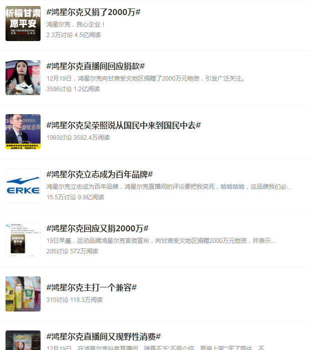 鸿星尔克直播间里,主播冲着消费者呼喊着要理性消费的一幕,又重新上演。北京时间12月18日23时59分,甘肃临夏州积石山县发生6.2级地震,截至目前已造成过百人遇难,部分水、电、交通、通讯等基础设施受损。在全力搜救被困人员的同时,全力救治伤员、妥善安置好受灾群众也是当务之急,不少企业第一时间捐钱捐物。19日早晨,国货品牌鸿星尔克官微宣布,向甘肃受灾地区捐赠2000万元物资,第一批物资主要以抗寒保暖、应急救灾的物品为主。对此,鸿星尔克相关人士回应,“甘肃灾情紧急,公司昨晚就动起来了,准备了一晚。” 并将持续关注救灾进展。这个举动可把网友们给感动坏了,不仅把鸿星尔克捐款2000万送上热搜第一,还有不少网友动情,发文夸赞鸿星尔克:“每次灾难都能看见你的身影,让人怎么不爱呢?患难见真情,落难见人心,鸿星尔克,不愧为国货之光”。有的网友还为鸿星尔克的这次捐款表示心疼:“鸿星尔克少捐点,你这么搞,产品还那么便宜,我真怕你倒闭了,以后买不到了!”更有网友直接在鸿星尔克捐款博下喊话:“今晚就去直播间下单!”消息一出,就有不少消费者涌入鸿星尔克官方旗舰店抖音直播间里进行“野性消费”,把鸿星尔克直播间冲上潮品运动鞋及运动户外榜单第一名。直播间左下方评论区,网友们留言不断:“不用介绍了,直接上链接”“支持国货,良心国货”“无脑买,冲啊”……直播间里的主播多次向网友致谢并劝解网友要理性消费。02