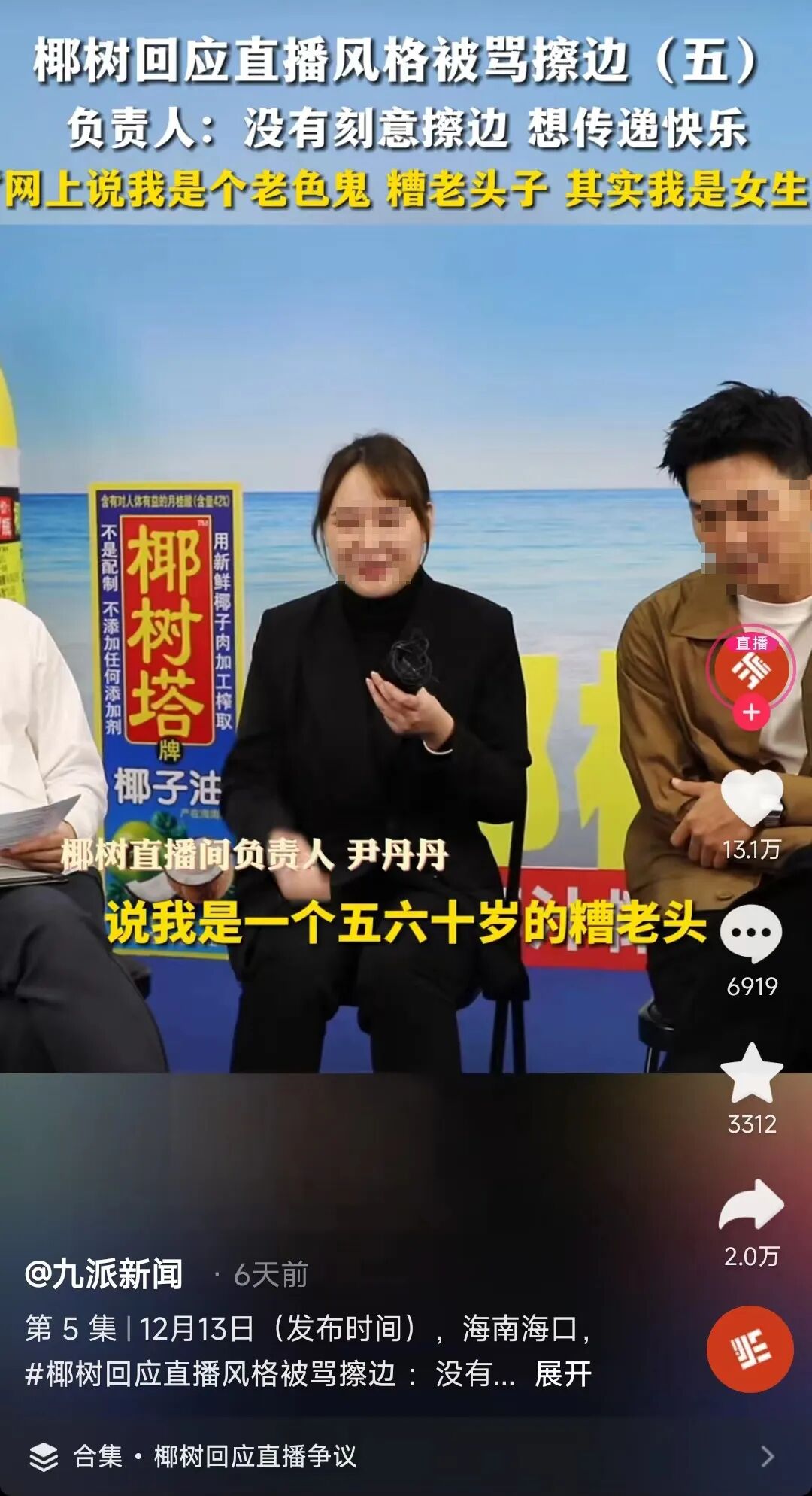 其实不管一开始出于怎样的目的或者承不承认,椰树直播间的确因为“擦边”的标签出圈了。
