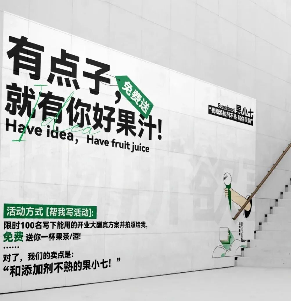 这个果汁店围挡,用一杯果汁换你一个idea,这个idea本身就很不错。