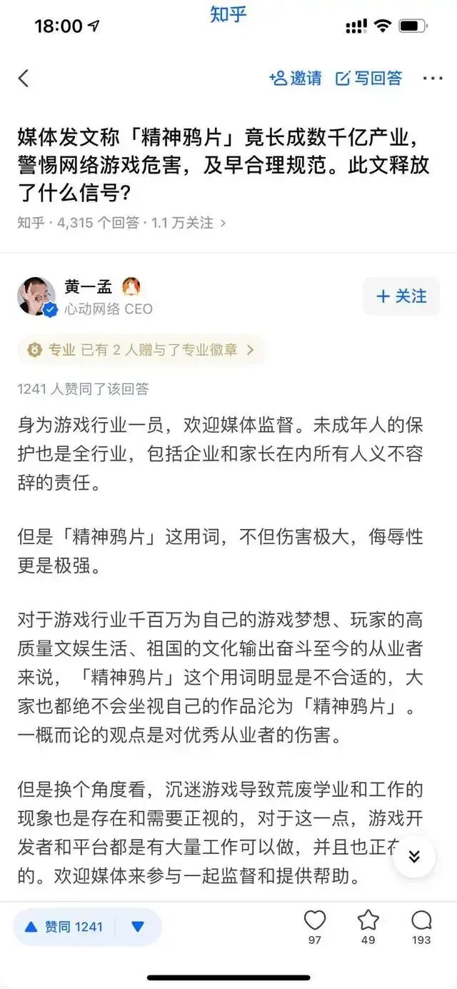 虽然过去了20多年,但这种观点现在仍时不时地被拿出来用于对游戏产业进行批判,对此心动网络董事长黄一孟曾在知乎发文称:“精神鸦片”这用词,不但伤害极大,侮辱性更是极强。