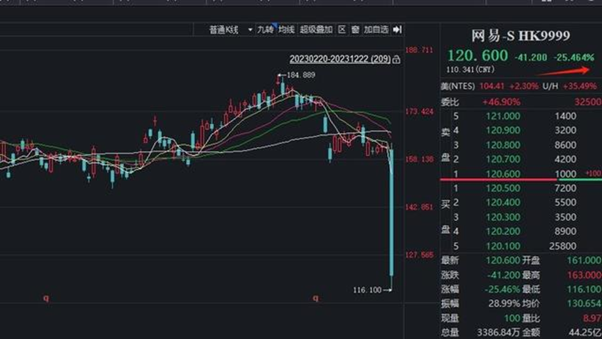其中,腾讯股价收盘时为274港元,较前一日下跌38.6港元,跌幅12.35%,市值蒸发掉3621亿港元;网易股价更是遭遇重挫,中途一度跌幅达28.24%,收盘时股价122港元,较前一日下跌39.8港元,跌幅为24.6%,市值蒸发1312亿港元。