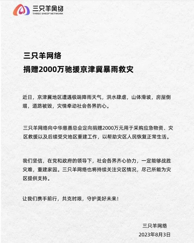 2023Q1,三只羊已经实现营收3.5亿,环比增长了60倍。如果按照这种速度来算,预计2023全年三只羊抖音销售规模将达到150亿。据媒体报道,小杨哥靠搞怪出奇的风格成功出位后,直播带货成为疯狂小杨哥的主要盈利方式。不过除直播带货意外,直播切片也是三只羊的重要获利点。所谓直播切片,指的是,有意向合作的账号,在达成协议后,可将疯狂小杨哥的直播片段进行二次剪辑,然后上传到平台当中,获得小黄车的订单。据了解,目前已经有2000多人获得了授权,而仅靠直播切片,三只羊每个月就可收入1600万。在谈及2022年实缴税收2亿元时,小杨哥表示,太多人提出可以帮三只羊”合理避税“,但小杨哥认为税收缴纳不能含糊,所以全部断然拒绝。如果按照15亿的预计销售预计,今年三只羊需要缴纳的税收将达到4.5个亿。此外,值得注意的是,今年北京、郑州等多地出现极端天气,引发洪涝等地质灾害,三只羊曾发文表示,向中华慈善总会定向捐赠2000万元用于灾区救援以及后续受灾重建等工作。