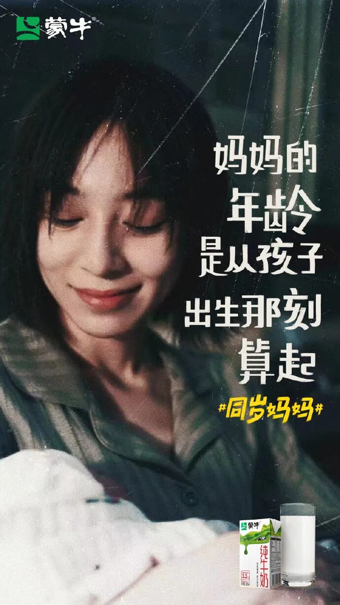 出自蒙牛,主张妈妈与孩子同岁,其实妈妈和你一样大。