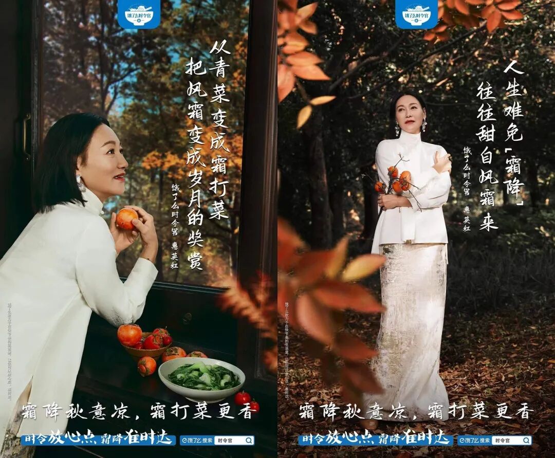 出自饿了么 ,以“霜打的青菜分外甜”的食俗带出人生哲理——经历风霜的人,更能回甘。人生难免霜降,但往往甜自风霜来。这样励志的文案很有激励作用。