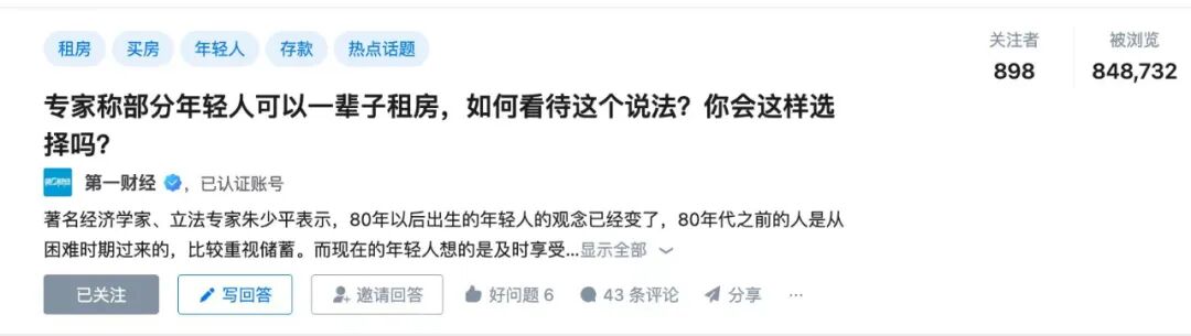 曾经有网友在知乎提出“两个人可以一辈子租房生活吗”问题,引起了广泛的讨论。今年也有专家表示,部分年轻人可以一辈子租房。