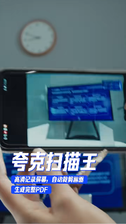 安陵容冰嬉技能重现,一个丝滑转身,展示用夸克扫描王对着屏幕拍照,自动裁剪照片,生成完整PDF的黑科技。