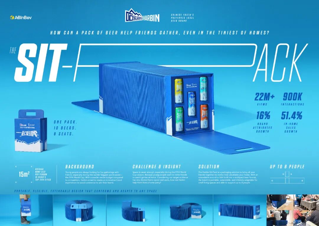 2 线下社交场景、数字营销齐发力,百威亚太俘获年轻消费者(1)哈尔滨啤酒“小哈凳”:创新场景营销,力拓线下社交场景在这个碎片化的时代,传统的品牌忠诚度概念已经不复存在,基于“场景”的营销已成为品牌在消费者心中构筑独特印象的重中之重。而对于世界杯的居家欢聚场景而言,箱装啤酒就是点燃球迷热情的存在。为了让消费者在线下能随时享受世界杯期间与家人、朋友的欢聚,哈尔滨啤酒推出了一款特别的箱装啤酒——哈尔滨啤酒“小哈凳”。由风琴纸制作而成的可折叠的啤酒箱,不仅内含10罐哈尔滨啤酒,还可以展开为一个8人座的长凳,不管是空间狭小的室内,还是缺少配置的室外,都能让球迷们有酒喝、有地坐,放松地沉浸在世界杯带来的欢乐中。获得了2023金投赏全场大奖的“小哈凳”限量包装不仅在1分钟内就被抢购一空,更助力了品牌的整体营销效果。在小哈凳的影响力加持下,哈尔滨啤酒在世界杯营销期间取得了亮眼的销量和品牌双增长:世界杯营销核心铝罐产品在线上电商渠道销量较21年同期增长51.4%,核心品牌指标认知增长16%,帮助品牌在消费者心中留下富有创新,为年轻人而生,与朋友共享的形象印记。可以说,社区优先(Community-first creativity)对于品牌创意有着深远的影响。当品牌真正基于场景解决消费者的需求,就可以与其建立更紧密的联结,成为更多消费者的“第一选择”。
