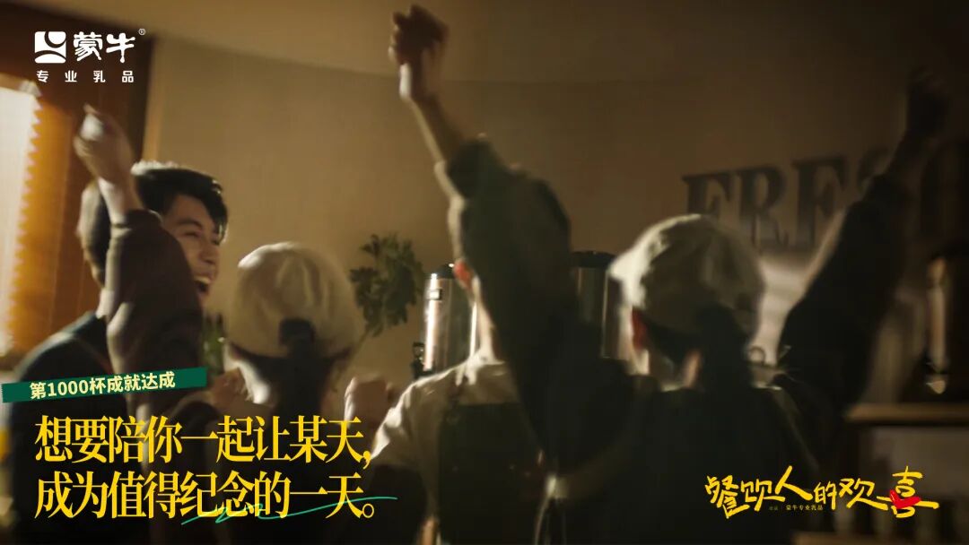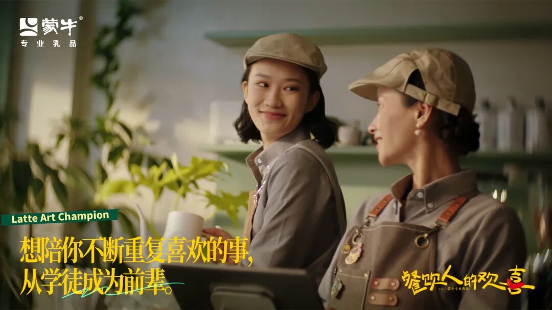 而这些洞察层的考量,也在短片内容的输出上直观体现。一方面,蒙牛专业乳品选择以真实、鲜活的“餐饮人”为主角,通过将话筒从品牌手中递给行业一线的“餐饮人”,更具代入感地打通对话路径。比如,开头一句“成为一个餐饮人,会变得有些不一样”,没有套路式地着眼大家对餐饮人的固有印象,而是以平视、走近、了解的视角将餐饮人的“独白”娓娓道来,代入感十足的同时,让人联想到别人吃饭休闲的时候,是餐饮人最忙的时候;别人下班的时候,是餐饮人上班的忙碌期这些真实情景,连接与信任无形建立。另一方面,蒙牛专业乳品借助多元、立体的行业人物群像,围绕“餐饮行业”用户感兴趣的事件、话题内容撬动共情。其中既有餐饮人“心生忧愁”的一面,比如片子一开始,茶饮店老板守着空店孤独地坐在路边;也有心生欢喜的瞬间,比如咖啡师在反复练习后获得咖啡拉花大赛金奖,这些直观的例证,让大家看到蒙牛专业乳品既深知餐饮人的不易,也看见了独属于餐饮人的成长欢喜。总结来说就是,以餐饮人真实故事为素材,走心有共鸣;以每个行业实践者经历的小事出发,有代入感。相比于不好理解的专业话术,具象可感的餐饮人日常无疑成了用户了解蒙牛专业乳品最好的背书。02