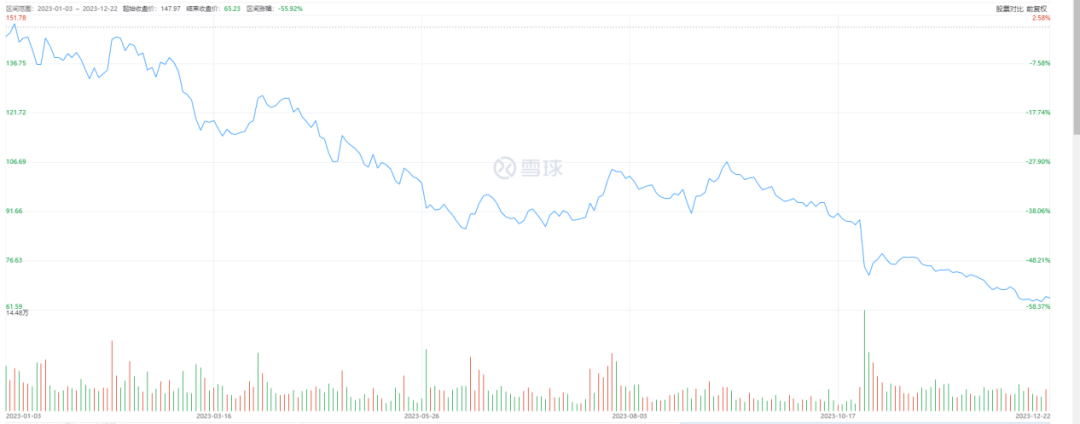 “功能性护肤第一股”薇诺娜也因敏感肌赛道竞争加剧、对单一产品过度依赖、品控失衡等一系列问题,股价从年初108.31元/股的高位,一路暴跌至年底的65元/股附近。