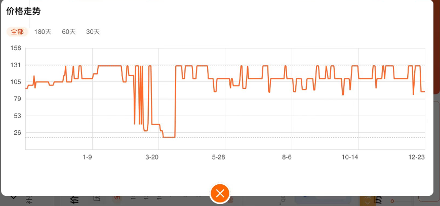 玻尿酸价格的持续下降,直接冲击华熙生物多款美妆产品售价。以淘宝华熙生物大分子玻尿酸1%高分子透明质酸钠溶液产品为例,该产品从到手价158元,下跌最低至82.5元,下跌比例接近48%。