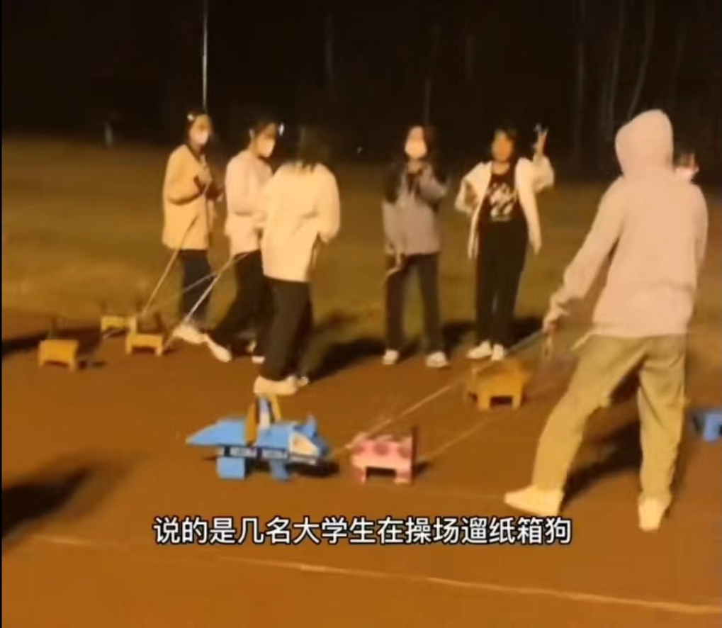 遛真狗不是奇闻,但遛假狗真的非常现实世界脱节了,而且还是只“纸狗”,还群遛“纸狗”!