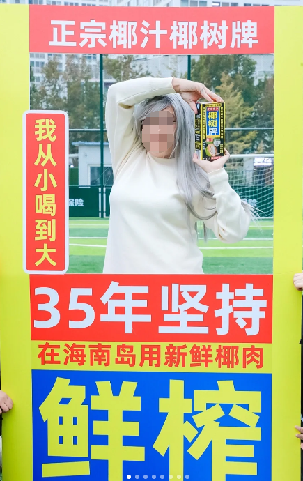 挑战大嫂徐冬冬,这位小哥不仅勇气可嘉,还拿捏了椰树造型的精髓,再把“我从小喝到大”的招牌一带,全场最具耀眼的仔就是你啦。