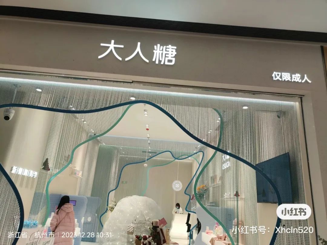 搜索发现,大人糖是创立于2019年的新锐原创设计情趣品牌,隶属深圳市有幸科技有限公司。今年7月14日在深圳宝安区壹方城购物中心开了第一家线下门店,也是国内首家开在购物中心里的情趣用品门店。但当时似乎并未引起较大的话题与影响。在社交平台上,更多的是对深圳这座城市的赞美,“不愧是深圳,一线城市确实够开放的”“果然大城市很包容”“不愧是深圳的商场就是玩得很开!”首店开业时,大人糖的口号为“让情趣玩具走到阳光下,我们没有食言。”今年,除了深圳,大人糖已经陆续在重庆、长沙、杭州开店。随着社会观念的开放和消费者需求的多样化,情趣用品店逐渐从隐蔽的小巷走进公众视野。大人糖的入驻商场,无疑是一个具有话题性的商业现象。对于这种变化,人们的看法不尽相同。一些人认为这是社会进步和观念开放的体现,人们对于性健康和情趣用品的接受度正在提高。他们认为,这类店铺的存在有助于满足部分消费者的需求,并有助于推动行业的规范化发展。