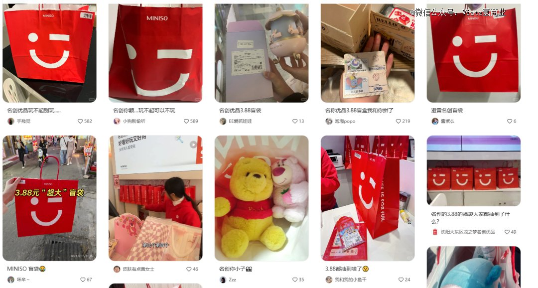 当然,这并不是名创优品第一次尝试推出盲袋活动。事实上,在百货行业里,利用盲盒、盲袋等形式吸引消费者的做法已经屡见不鲜。这种营销方式不仅能为商家带来额外的销量和利润,更能通过激发顾客的好奇心和赌徒心理。