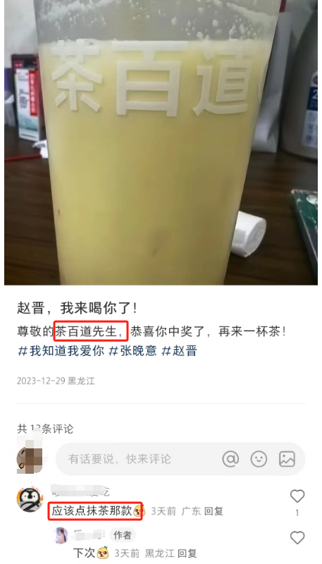 甚至喊话茶百道、赵晋赶紧官宣,满足放风小分队嗑CP的愿望!