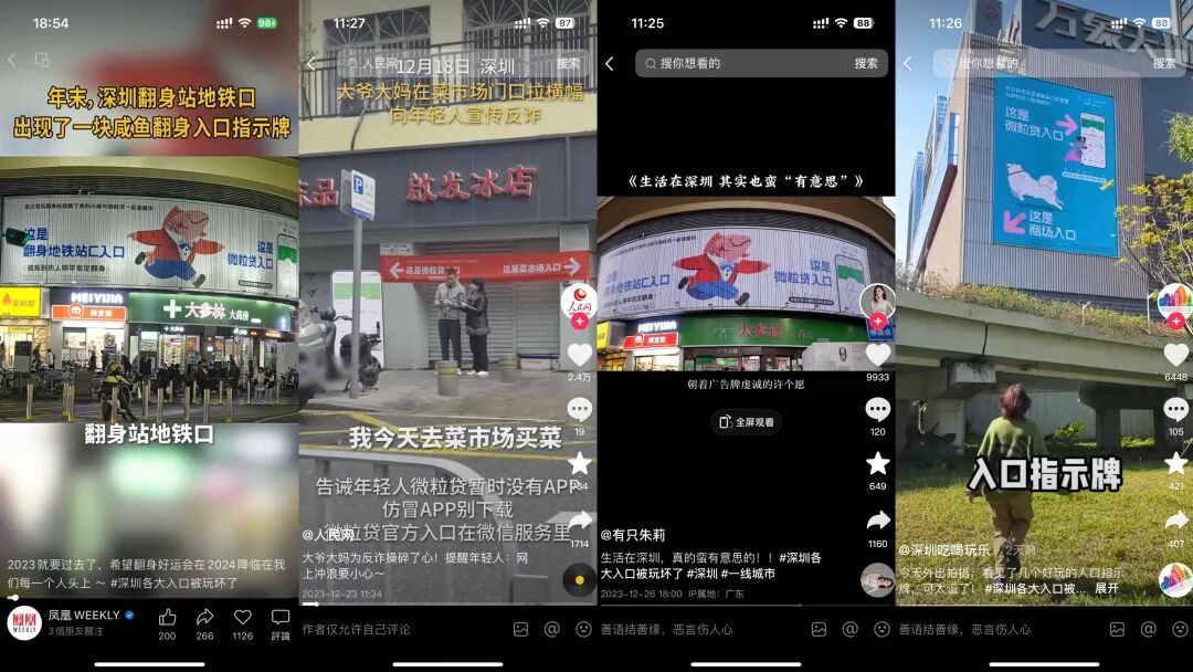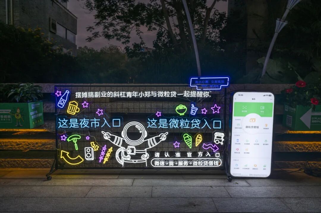 微粒贷在深圳年轻人出没的街头巷尾,利用各大入口处进行玩梗式的创意宣导,巧妙加入微粒贷的官方入口指示,更深刻地完成微粒贷入口心智教育。