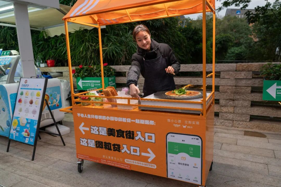 在“内卷”成为大众生活常态的背景下,“卷”成为大众调侃与自嘲的关键词。在美食街出现了一辆写着“不卷人生只卷饼”的卷饼小摊车,道出了对“不卷人生”的勇气和通透,而“只卷饼”又多了一点幽默感,正因为这些好玩的梗才让年轻人更愿意拍照打卡,自发引起二次传播。