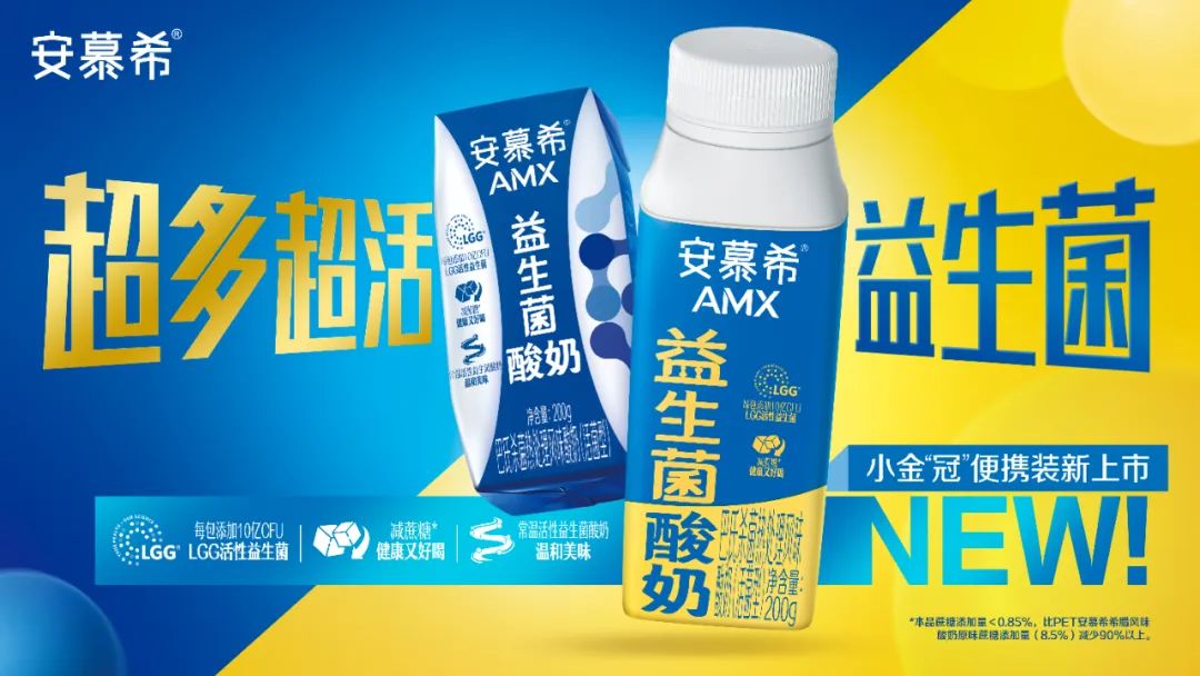 与消费者共鸣的背后,是安慕希坚持“品牌+产品”的双轮驱动的方法论:在产品端,安慕希坚持不断自我挑战、寻求创新,由此带来了行业「首款」常温活性益生菌酸奶,不断求索的品牌DNA让安慕希在经典钻原味基础上进行自我更新迭代,带来了全新口感升级、包装升级的小金“冠”包装。