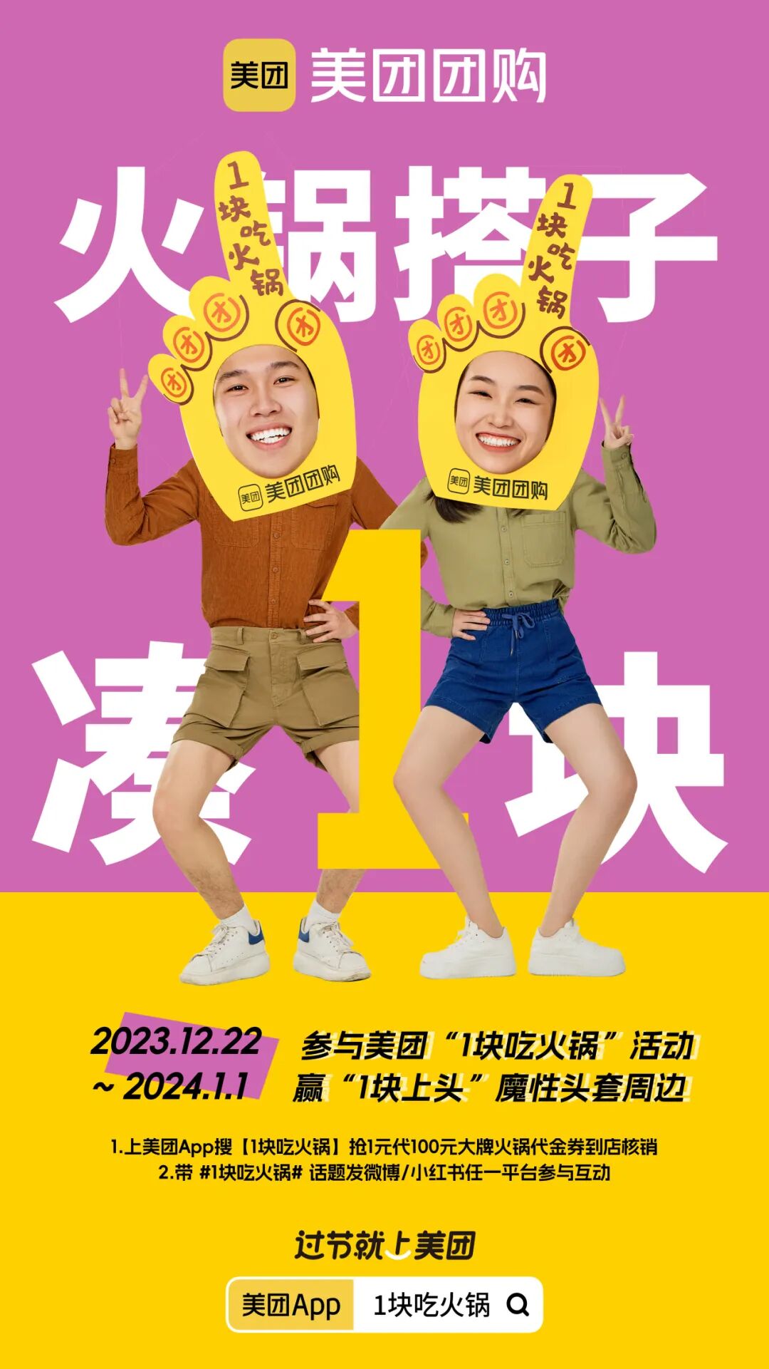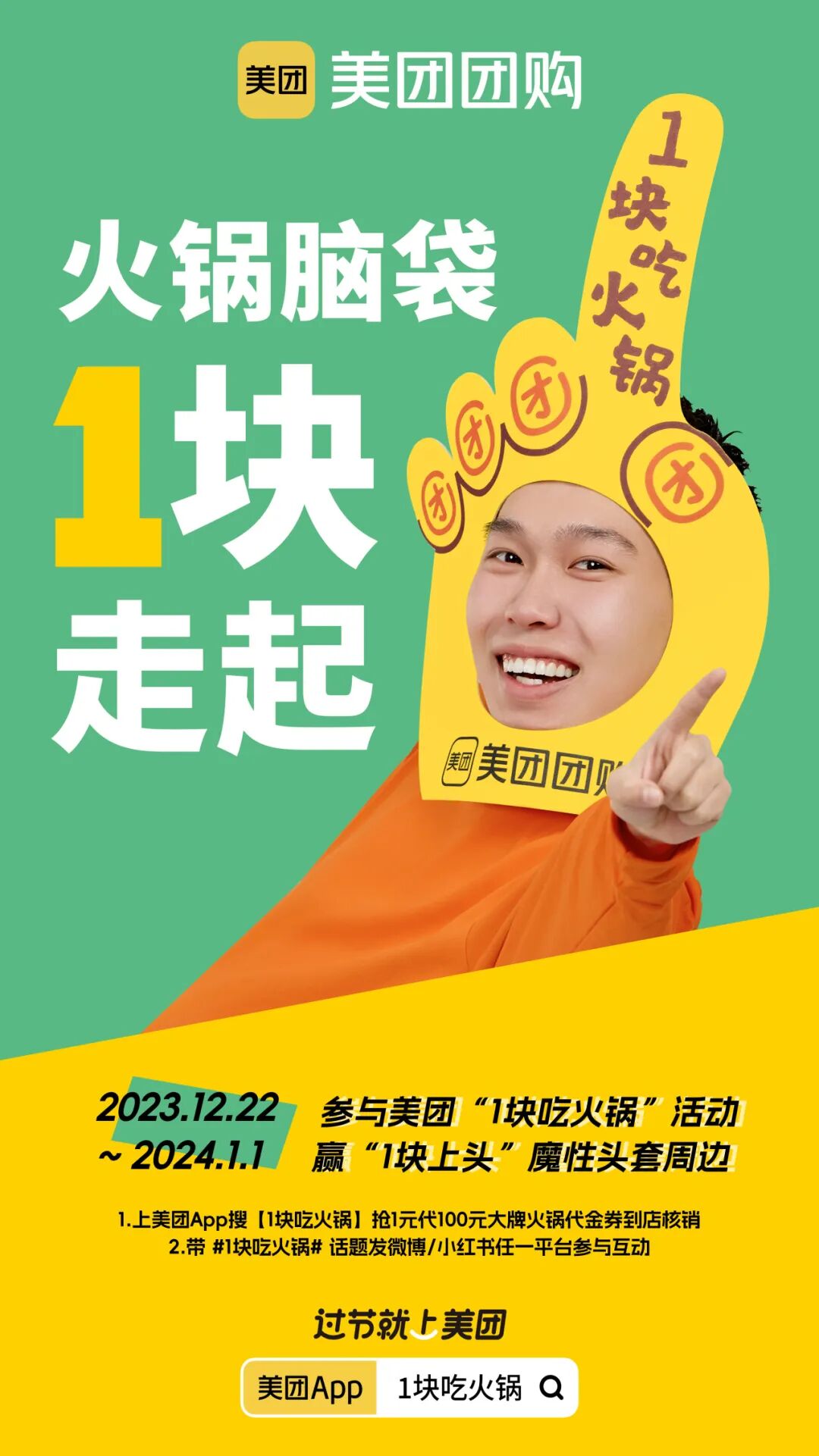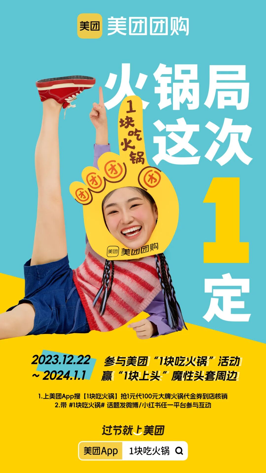 美团团购#1块吃火锅#惊喜来袭