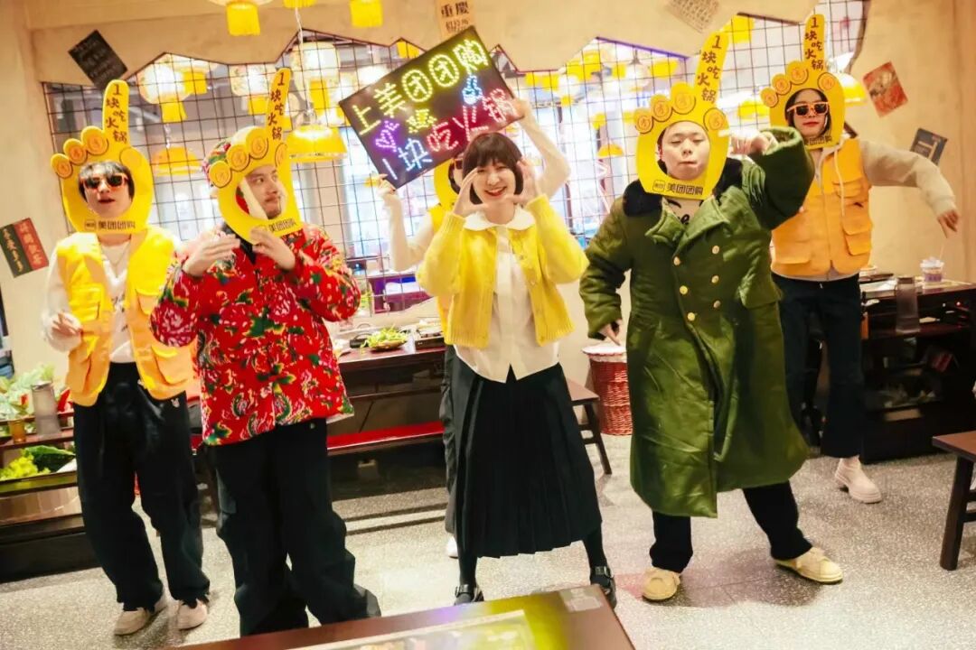 互联网的出现,彻底打破了信息黑匣子与信息不对称时代,从原来的单一形式逐渐演变成多元化的信息传播,这就使得品牌针对消费者的营销思路发生了质的改变。信息本身的泛滥化在增加用户获取需求负担的同时,也增加了时间成本,如何精准的抢占消费者注意力,达成传播的最大效果,成为了很多品牌做突围的核心问题。品牌之所以能够拢获大量用户注意,抢占年轻群体流量高地,背后隐藏的是美团团购缜密的策略思路。1、以魔性创意为引,搭建品牌与用户之间的“引力场”品牌理念与圈层人群极致生活追求的重合,是营销最佳的胶合剂。以此打造破圈层内容,更易建立圈层共同文化氛围,让目标圈层对品牌产生深度的精神认同。从美团团购打造的「1块吃火锅舞」魔性舞蹈,到线下的博主嗨唱嗨跳,这其中蕴含的即是年轻化营销的底层逻辑,搭建品牌与消费者之间的沟通桥梁。年轻化不只是给用户带来“年轻感”,而是要给用户带来“新鲜感”。当代社会,消费早已从经济概念转变成了文化概念。换而言之,年轻人愿意为兴趣消费的前提是产品背后的价值符号能够与自身个性价值观高度契合,在同频共振中实现用户的价值满足。这种和用户玩在一起的营销方式,无形中把双旦氛围烘托到了极致,尤其是在如今年味逐渐淡化的大环境下,“1块吃火锅”活动真正有了一种过节的感觉,把笑声、欢乐感染到每一个群体身上。