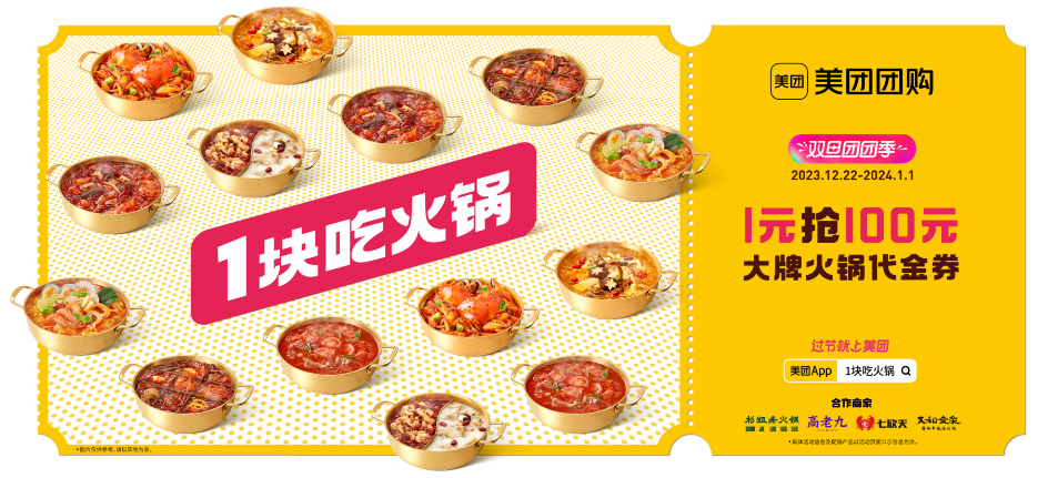 然而,在双旦营销眼花缭乱的当下,美团团购却做到了“足够吸睛”,创新性地用一场#1块吃火锅#活动,搭建起品牌与消费者沟通互动场域,不仅给足了用户尊享体验,也把一种仪式感带入到生活场景之中,再一次给行业的创新营销带去了更多可能性。