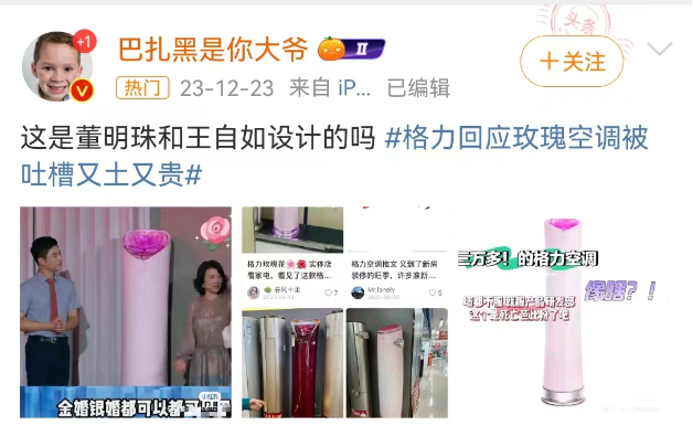 还记得之前【顶尖广告】发过一篇关于格力玫瑰空调的推文,凭借芭比粉玫瑰设计,奢侈品的定价,把网友丑哭了,没想到这两天出续集了。