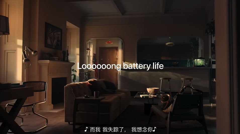 在这一环境下,苹果就发布了一支广告片,把一直受大众所诟病的续航拿来做创意,通过拟人化的思维去表现产品力,当然,这背后也映射出iPhone在产品竞争之下的迫切感。