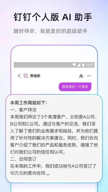 在过去一年,ChatGPT一鸣惊人,AIGC热度爆火,AI时代每个人和企业都有望拥有由AI驱动的个性化智能助理,这也正是钉钉在2024年要做的。
