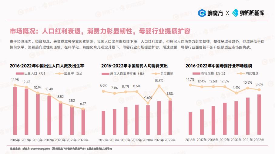 报告显示,尽管我国人口出生率持续下滑,但母婴行业市场规模在2023年依然保持增长,特别是孕产妇市场规模同比增速高达86%,远高于婴童市场的增速。同时,母婴食品和用品行业也呈现出高增长态势,尤其是孕产妇食品和婴童食品市场规模显著扩大。此外,90后、95后年轻父母的消费理念革新,推动了母婴市场的多元化和细分化。
