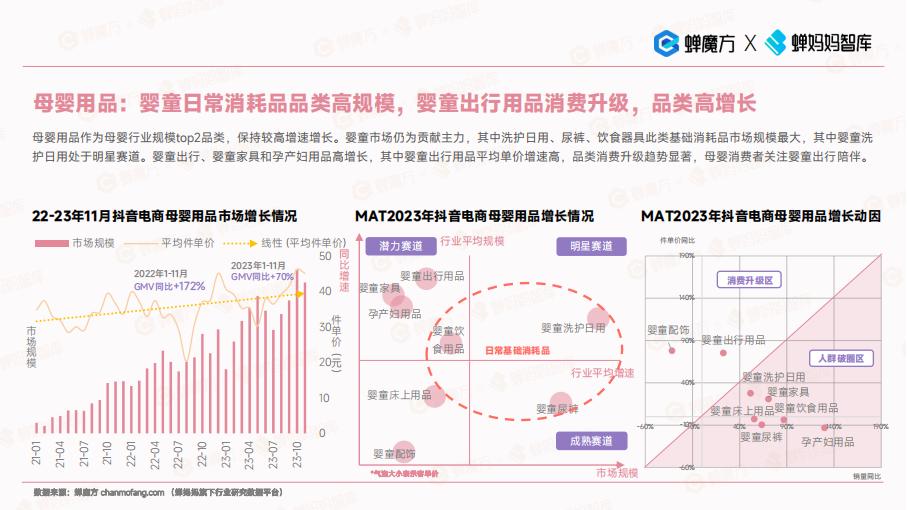 抖音电商母婴行业在2023年展现出品质消费时代的到来,孕产妇市场成为新的增长点,而婴童市场则面临激烈的竞争。
