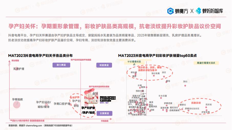 抖音电商母婴行业的繁荣,得益于年轻父母对科学化、精细化育儿的追求,他们更倾向于选择品质更高、功能更专业的产品。这一趋势反映在孕产妇市场的高增长潜力上,品牌和产品创新成为吸引消费者的关键。而婴童市场由于品牌众多,竞争激烈,头部品牌市场份额集中度相对较低,品牌间需要不断创新以保持竞争力。