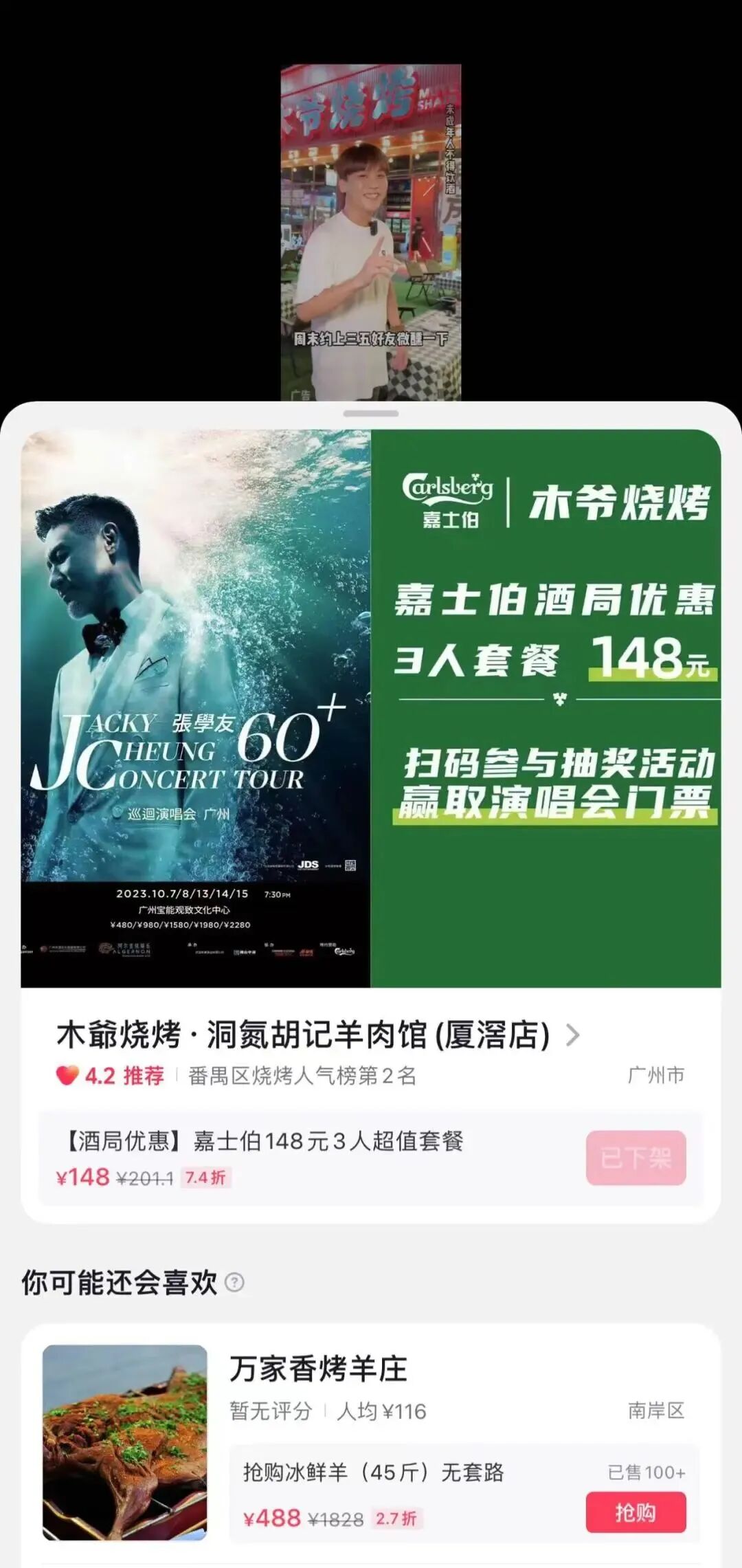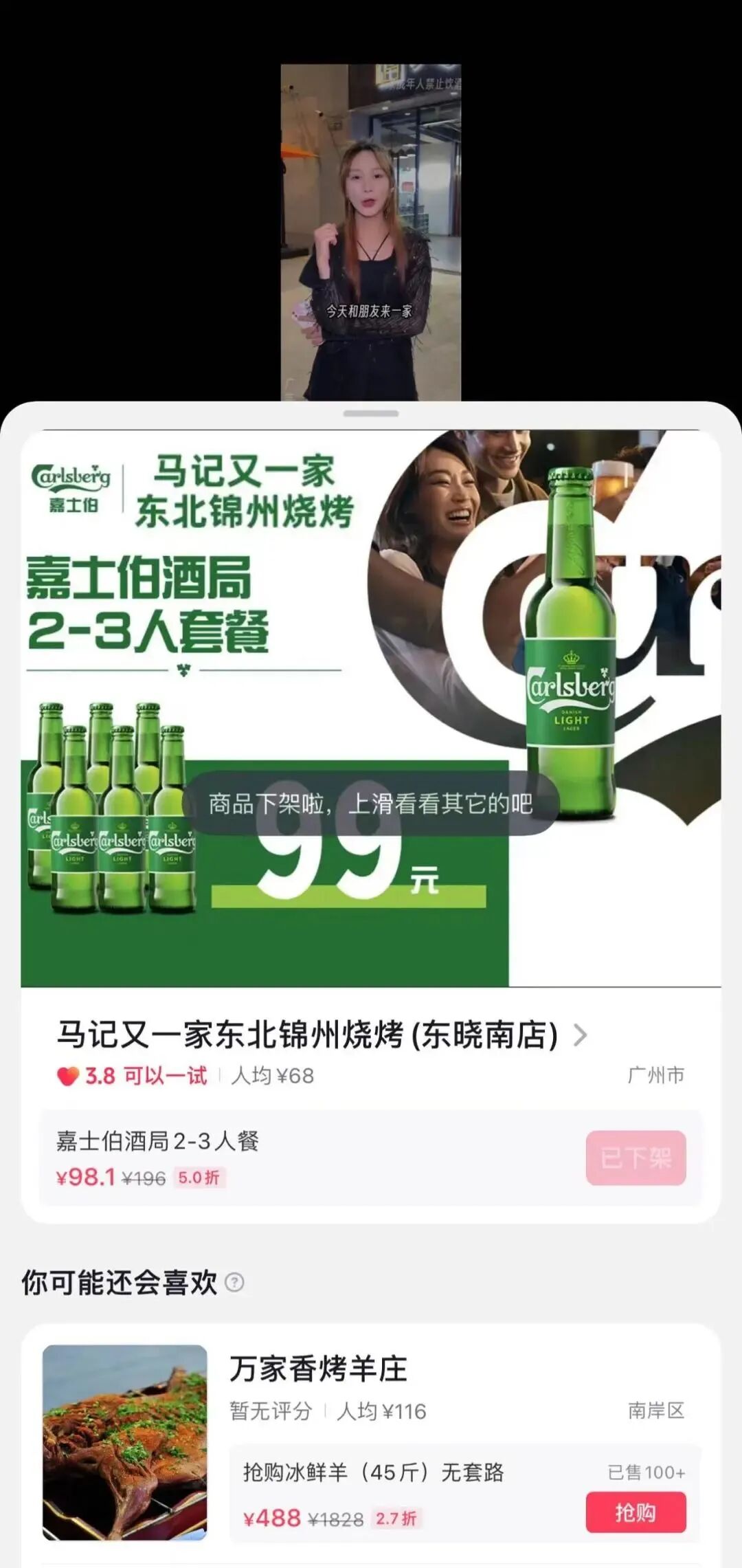 其次,在搭建起消费需求和消费场景后,嘉士伯啤酒与抖音生活服务以#周末酒局总有嘉士伯 话题为载体,联动@广州吃不胖 、@楚翘寻吃东莞 、@小喵大王等多位广州本地达人联合种草。以“最适合周末的打开方式”为话题切入点,热心为大家安利本地最适合朋友周末小聚且好吃不贵的聚餐地,持续加深用户“周末小聚喝嘉士伯”的消费印记。同时通过在视频中挂靠门店定位,进一步调动用户周末相约、到店相聚的消费热情。