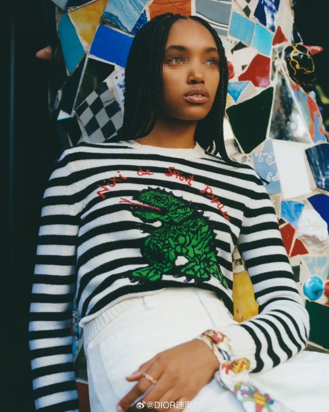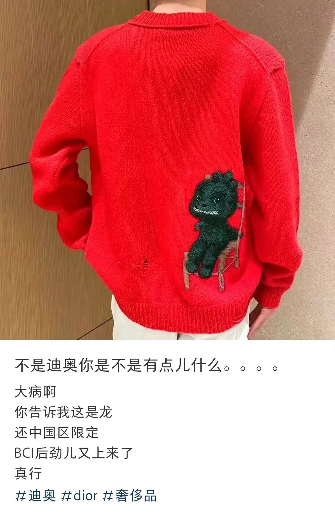 更离谱的是,跟DIOR家印在衣服上的图案比起来,这个玩偶版的龙已经算“和蔼可亲”了。