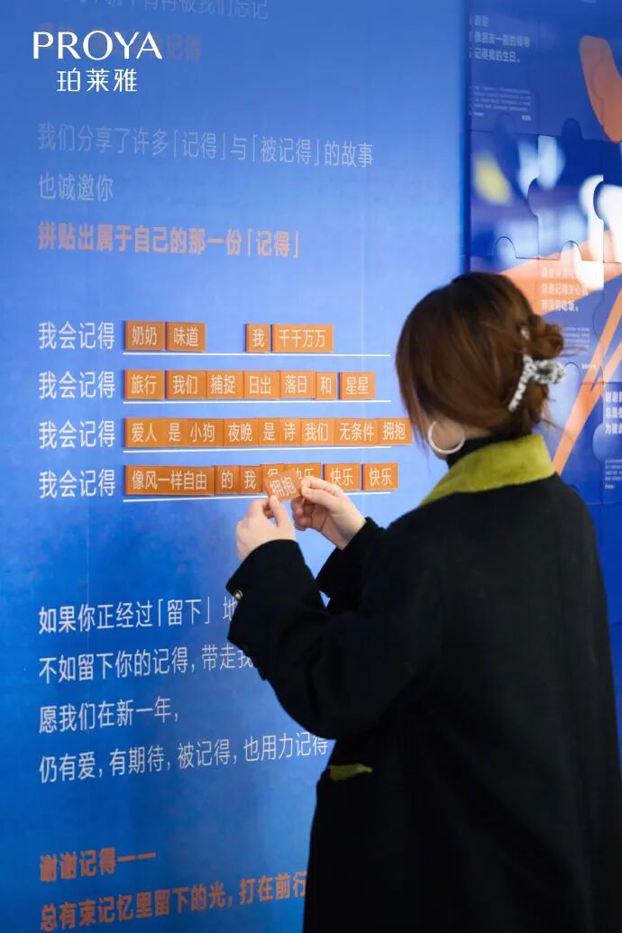 生活在杭州的朋友才知道,地铁 3 号线有一个名为「留下」的站点。为了将最重要的一声「谢谢记得」更大范围传递给用户,在岁末之际,珀莱雅在杭州「留下」地铁站举办了「谢谢记得」珀莱雅用户故事展,去「留下」过去一年间那些「谢谢记得」的时刻。借助「留下」这个富有情感色彩和杭州人文气息的站名,对用户深情告白。在地铁站,一块块记忆碎片化作巨型拼图,在品牌墙画上片片铺陈,整个地铁站厅仿佛一个品牌长廊。吊旗展示了近30个不同的UGC内容故事,抬头即可品读这些故事。在展览现场,珀莱雅还把拼贴诗,做成了一块块磁性贴,放到一面品牌互动墙上。让用户通过拼贴字词或短语,自行组成专属于自己美好记忆的句子,分享「记得」与「被记得」的故事。并邀请来往旅客留下自己的故事并派送答谢小礼,留下用户的「记得」,就能带走珀莱雅的「谢意」,答谢小礼内含谢意拼图、暖暖耳机包、谢谢小礼等,让它们传递来自品牌的「谢谢」。暖暖耳机包能够帮助大家保管一些容易忘记的小东西,替大家「记得」;而一片一片的「谢意」拼图,让那些珍贵记忆,一片一片在心里被记得。借助地铁站「留下」的双重涵义,展现一个个温情、真实的用户故事,温暖着每一位走过地铁站的行人,也提醒他们去「留下」过去的珍贵瞬间,更好地迈向未来。这已经不是珀莱雅第一次在特殊站点做地铁营销了,去年开年的时候,珀莱雅在深圳「翻身」地铁站,打造了一场地铁诗歌展,在新年之际为路过的行人送上一份浪漫诗意。从「翻身」的新年诗歌展,到「留下」的用户故事展,珀莱雅精准踩中年轻人的情绪,为品牌的线下活动蒙上了一层浪漫色彩,更借助特殊站名一语双关,赋予了活动另一层深意。通过话题+地铁诗歌展+礼盒的组合方式,在感恩用户的同时,博得了用户的好感度,增强用户与品牌之间的粘性。