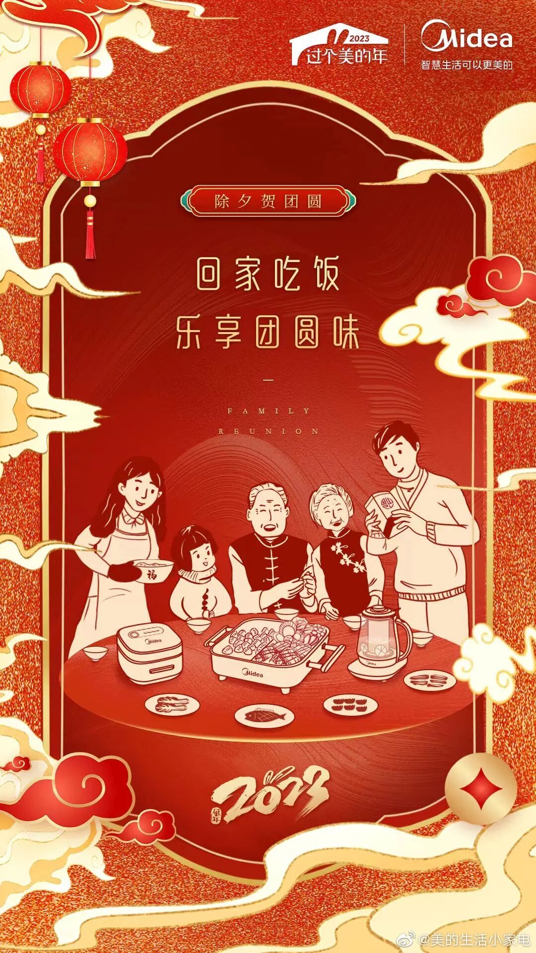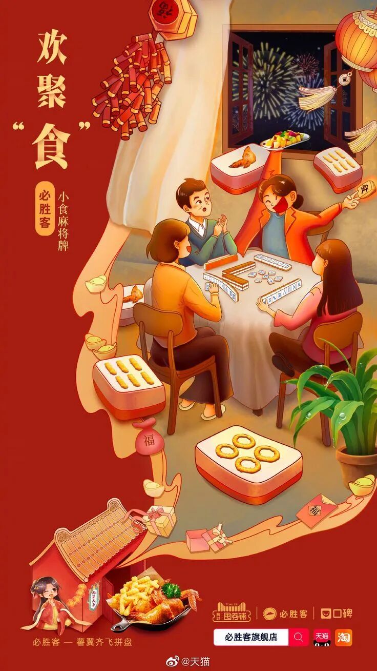 以家人团圆、拜年、放烟花、节庆活动等场景作为主画面,借助这些具有强烈情感的画面,再搭配喜庆的文案,可以更加深刻地触动消费者的内心。