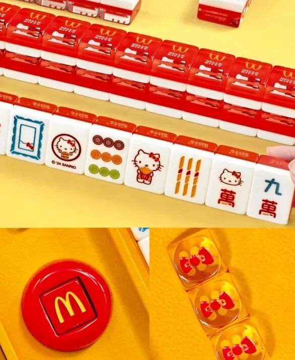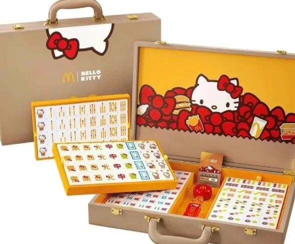 还是麦当劳。今年新春,麦当劳官宣联动Hello Kitty,推出限量版水晶麻雀套装。