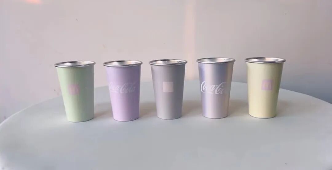 第六代可乐杯,复古弧形设计罕见回归,正反面都是可口可乐的品牌logo,水波纹图案看起来满满质感。