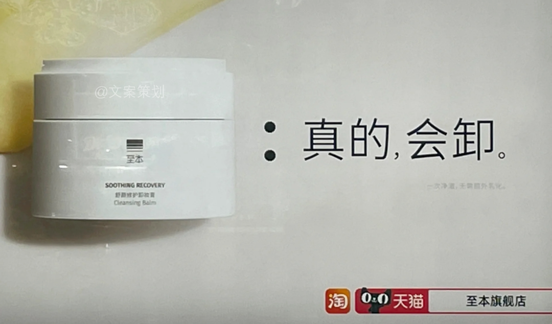 “我真的会谢”原本是一句网络用语,用在这里毫无违和感。短短的四个字,既契合了网络热点,还简介幽默地传达了产品的核心卖点——卸妆效果好。