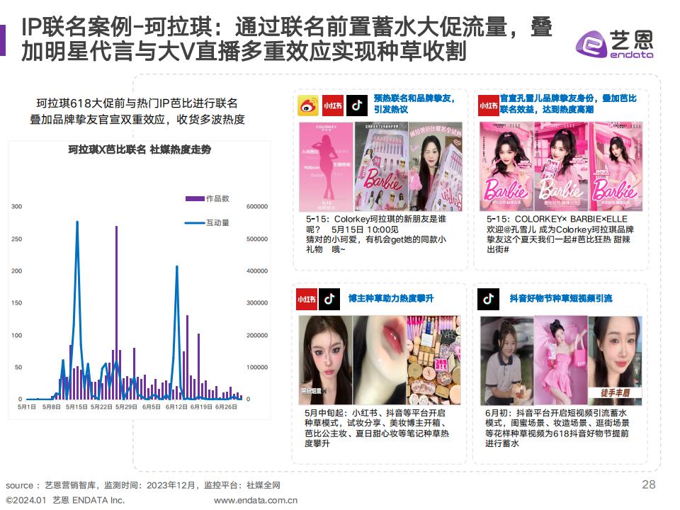2023年,美妆消费者呈现明显的变革趋势。360度精致护理、万能护肤公式、情绪护肤等概念不断激发消费者变美的热情。美妆品牌不断通过IP联名、明星营销等方式突破圈层界限,能够带动消费者爽点和共情的情绪式营销正在成为品牌提升热度的新趋势。