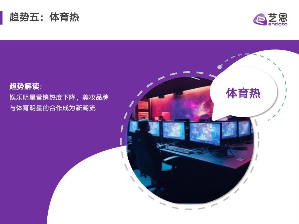 艺恩通过对美妆行业消费者需求与品牌营销趋势的洞察,总结归纳出2023年美妆行业六大热点趋势:在消费需求上,人们追求360°精致感、护肤过程的氛围感、产品成分的纯净感;在营销种草上,人们偏好IP联名类追潮式营销,杭州亚运会和电竞项目的发展等带动明星代言呈现体育热的趋势,能够带动消费者爽点和共情的情绪式营销同样也能收获消费者的喜爱。