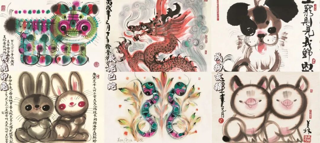 众所周知,韩美林大师是北京奥运会福娃设计者,他所作的水墨风的动物和生肖设计也很有特色。