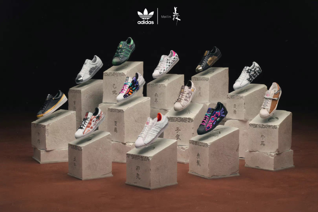 在adidas经典的贝壳头的基础上,韩美林大师通过岩画、雕塑、手稿、色彩、陶瓷、水墨六大类作品的演绎,结合生肖特色进行设计。