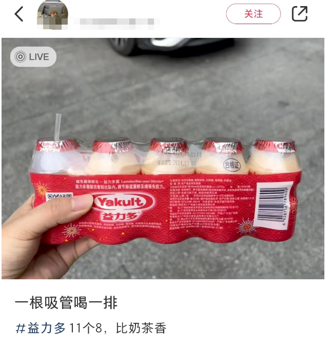 还提到南方盒装果冻配好勺子,100ml一瓶的益力多是配吸管的。