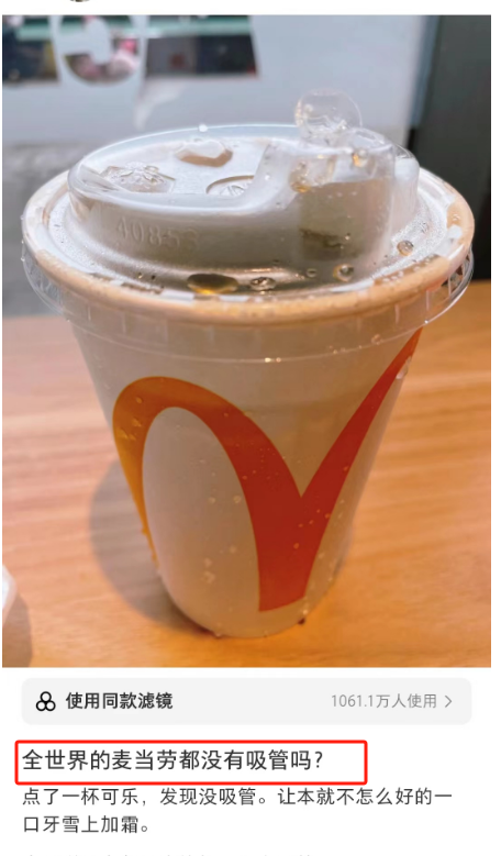 几年前麦当劳宣布取消吸管,推出杯盖直饮设计的“免吸管杯盖”,就让很多网友破防了。