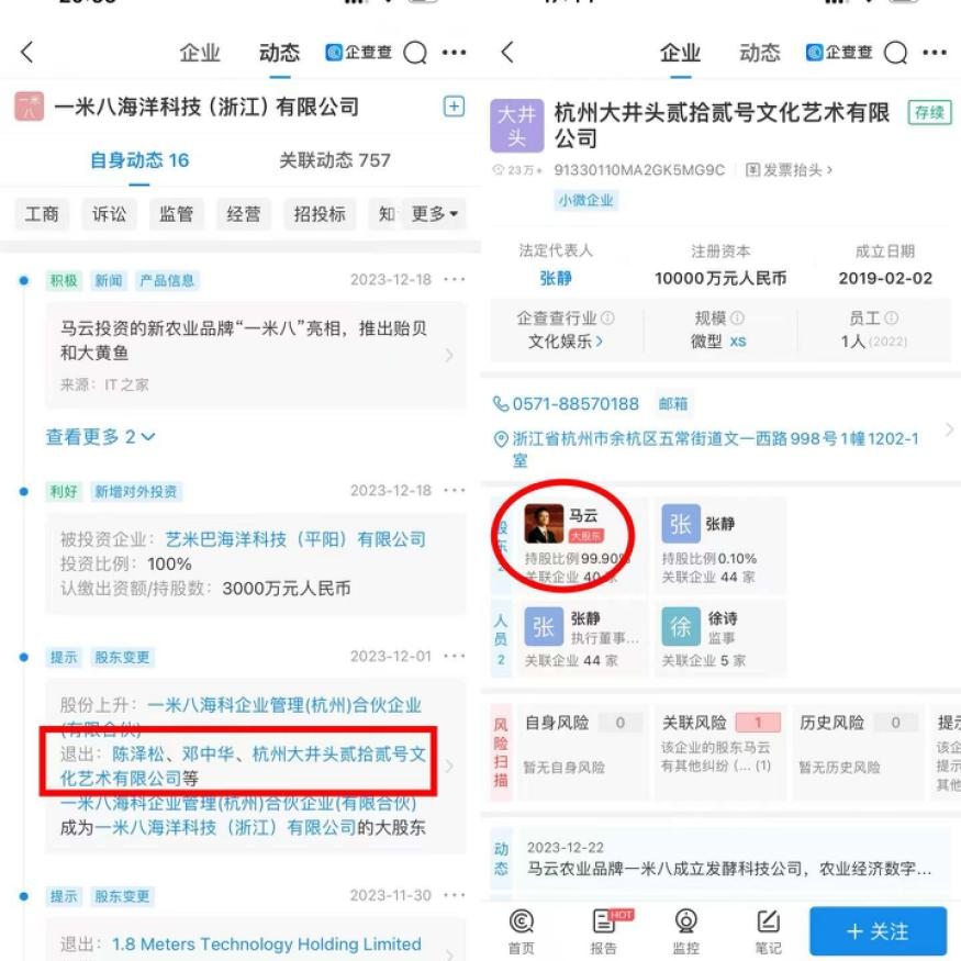 这家店曾经的股东之一是杭州大井头贰拾贰号文化艺术有限公司,而马云是这家公司的大股东,持股比例高达99.9%。正因为如此,有网友直接称呼一米八为马云的天猫店。