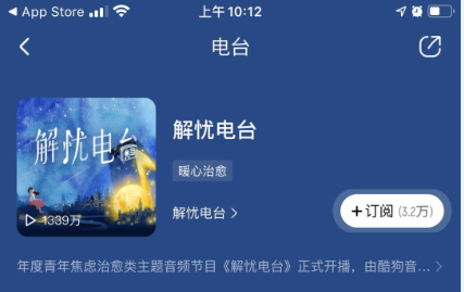 深谙于此,酷狗联合中国青年报打造《解忧电台》长音频IP,定位于“用声音治愈焦虑”,开启独家舒缓治愈型电台节目,一起倾听青年心声,用声音的力量持续陪伴年轻人成长,治愈他们无处安放的焦虑情绪。