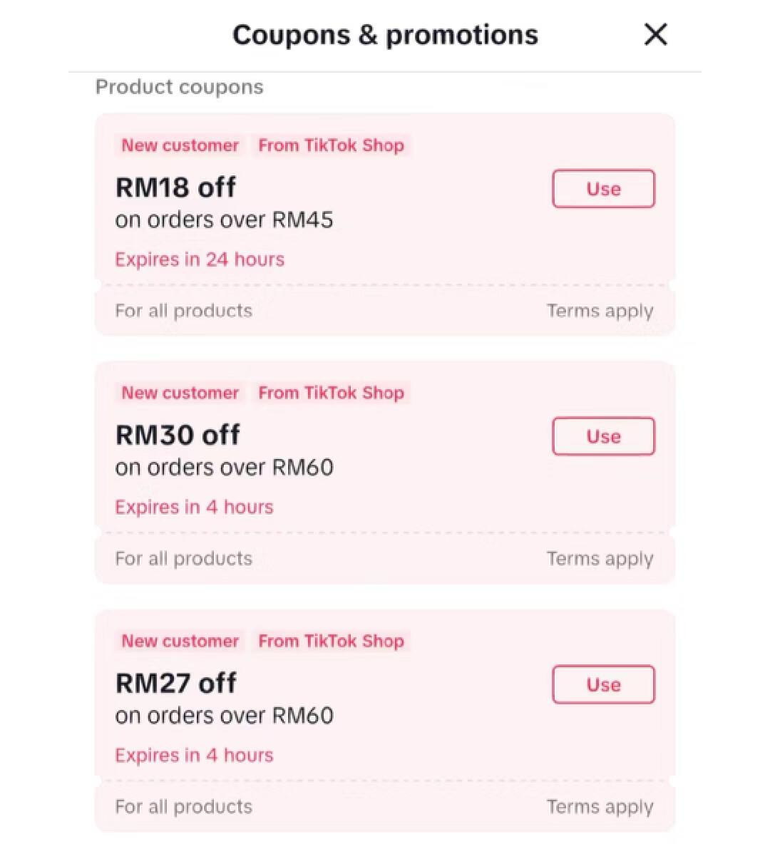 “除了补贴到位,我不会去TikTok买东西。”居住在马来西亚的jinx,早在2023年5月便兴奋地在TikTok购入了不少吸奶器、绵纸巾等家居用品,面对50%、45%的大额折扣券,BB难掩兴奋。