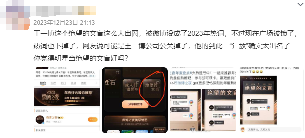 或是被吐槽是“绝望的文盲”,还一度被微博设置成了2023年度热词,只不过后来被删掉了。